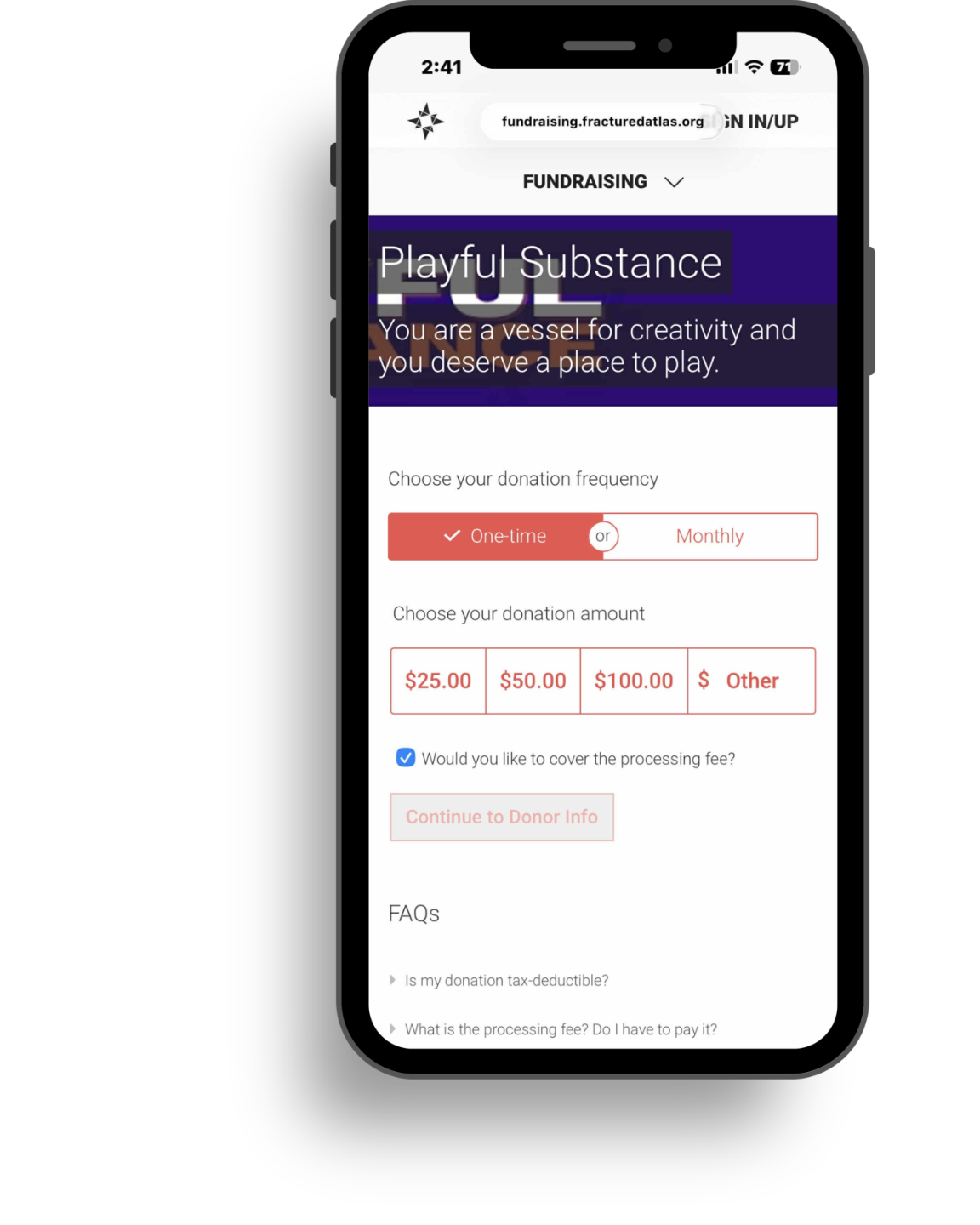 Playful Substance is a sponsored project of Fractured Atlas, a non-profit arts service organization. Contributions for the charitable purposes of Playful Substance must be made payable to Fractured Atlas only and are tax-deductible to the extent permitted by law